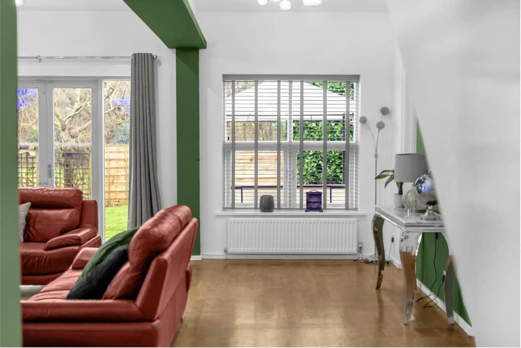 Manchester House Retreat is designed with comfort and sociable living in mind. Inside, you’ll find five spacious bedrooms, two inviting living areas, and an open-plan kitchen and dining space fully equipped for shared meals. There are two modern bathrooms, plus a convenient ground-floor WC.